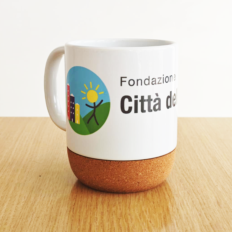 Elegante tazza in ceramica con accessorio in sughero naturale, utilizzabile sia come tappo per mantenere il calore, sia come sottobicchiere.